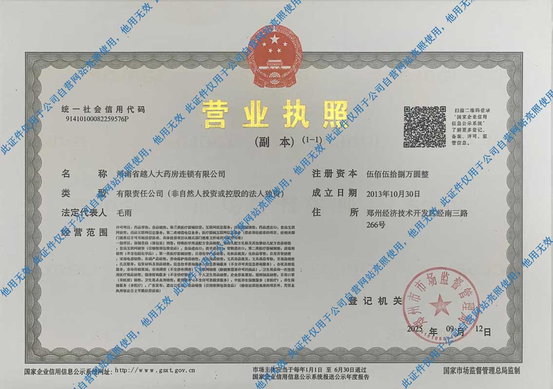 河南省越人大药房连锁有限公司成立于2013年10月,注册资金1008万元,是由河南省越人医药有限公司独资投资的药品零售连锁公司,越人大药房依托总公司越人批发业务的资源,以高密度的药房布局强化市场覆盖,打造一个以加盟为主,直营为辅的全网服务零售连锁商业平台。